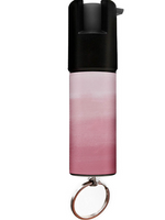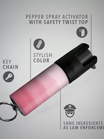 1. Unlock the red actuator button by sliding the flat red tab to the right so the red tab aligns with the small cut out of the black cap. CAUTION: pepper spray is now armed.