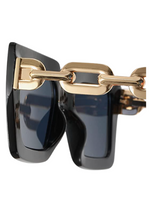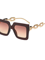Fashionable large frame retro, chain accent arm square sunglasses, featuring tinted lens.