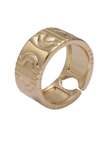 Details: Adjustable, 24k gold filled abstract ring, carved/tribal design.  Rhodium plated