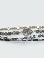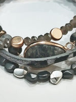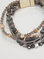 Details: Multilayered leather bracelet, oval stone accent piece, magnetic clasp