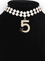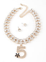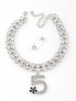 Crystal 5 Pendant Rhinestone Choker Necklace Set