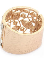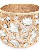 Hammered metal mixed with beautiful iridescent rhinestones make the perfect pair for this statement bracelet.