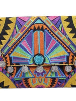 Embellished: Custom, hand made embroidered bird clutch, silver coin accents
