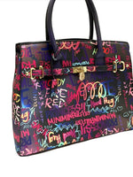 Your new reason to like graffiti! This multicolor print bag is your go to accessory for all of your daily carry items and is stylish enough to wear just about anywhere. Free matching mask included.