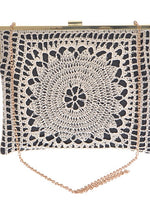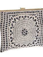 Composition: Embroidered fabric, foldover clutch with tassel, floral