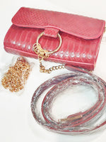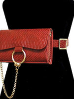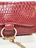 With a snake print finish, a warm cranberry hue and goldtone hardware, this stylish belt bag will definitely be your hottest accessory this summer. The Piper bag can be worn three ways: around your waist like a belt, over one shoulder, or even across the chest. The classic gold chain crossbody strap is the perfect contrast against the patterned bag. Carry it over a black oversized blazer for the ultimate chic look.