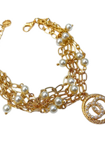 Details: Gold metal, multilayer bracelet with faux pearl accents, lobster closure.