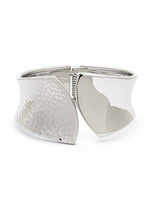 Sophisticated with a contemporary edge, the Carmella Silver Cuff Bracelet is the perfect blend of sleek simplicity and bold texture. Featuring a unique design with half smooth and half textured finishes, this hinged cuff adds subtle flair to any outfit. Crafted with a secure spring closure for easy wear, it’s both nickel and lead compliant, making it ideal for sensitive skin. Whether you're dressing up for a night out or adding polish to your daily look, Carmella brings effortless style and modern elegance.