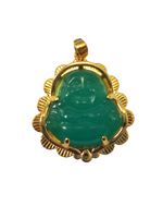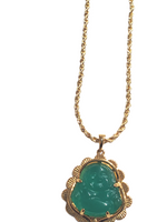 Chain: 18" rope chain (gold plated) with 3" extender. Buddha pendant, green and metal only.