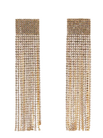 Metal color:  GoldMaterial: Alloy, clear rhinestonesDetails: Dramatic, long dangle earrings,  rhinestone, post back style. Style: FashionSize: One size