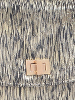 Style: Classy chicComposition: Cotton & PolyesterColor: Blue & GoldStrap Type: Gold chainClosure: Twist & LockMagnetic: NoPockets: NoneEmbellished: Faux foilBag Size:  SmallDimensions: 8.5W x 6.5HShips: 2-3 days