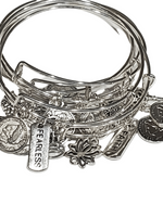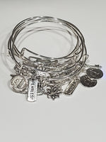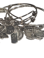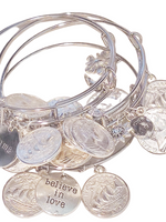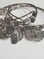 Make a little noise in these fun, adjustable bangles with plastic and metal coin and accent charms.  Variety of charms, comes in set of five (5) bangles.  These are custom made to order, please allow 1 day processing time, images are sample as charms may be different.