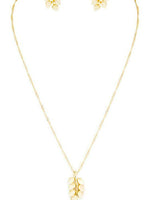The Golden Whisper Leaf Necklace Set features a shimmering leaf pendant on a fine chain, paired with matching petite drop earrings. Perfect for layering or wearing solo, this set brings a soft, organic elegance to any look — from brunch dates to evening soirées.