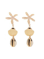 Bring a splash of coastal glam to your summer look. Sea Whisper Dangles blend the magic of the ocean with golden elegance, featuring shimmering starfish charms, delicate cowrie shells, and petite pearl accents that sway with every step. Lightweight and full of breezy charm, these drop earrings add just the right amount of sparkle whether you're brunching seaside or dancing under the stars.