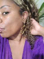 Details: Medium sized hoop dangle earrings, ornate flower/floral detail.