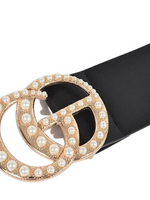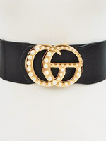 This stylish faux leather belt has an elastic stretch for the perfect sizing, adorned with faux pearls in chic gold metal hardware