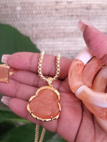 Tangerine Dreams is a delightful combination of pieces which includes a Buddha Pendant on a quality box chain (18k e-plated gold), an adjustable gold ring and a set of acrylic stretch bracelets.