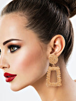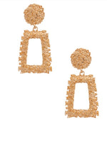 Product Details: Metal Color: GoldDetails: Nugget style, rectangle, geometric, post back, 2.75 inches longShips: 3-5 days via USPS