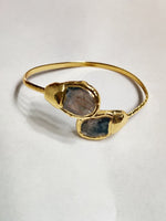 The perfect item worn solo or stacked, you need this natural stone cuff bracelet in a classic hammered gold metal finish.