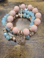 This stack of beaded semi-precious stone bracelets is serving up natural vibes with a melody of neutral tones, stack of three (3) bracelets.