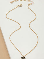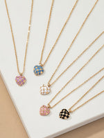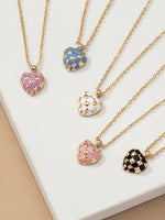 Adorn yourself with charm and style with our Checker Heart Pendant Necklace. This exquisite piece features a heart-shaped pendant crafted from alloy with enamel color, showcasing a playful checker pattern.