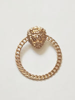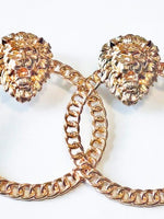 Make a statement with these designer inspired chain hoop earrings. Product Details: Metal Color: GoldMaterial: Metal platedDetails: Designer inspired lion's head door knockersSize: 3" long/wide, 7oz eachStyle: FashionShips: 3-5 days