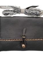 Style: Casual chicComposition: Polyeurethane LeatherColor: BlackStrap Type: Same color shoulder strap/wristlet strapClosure: TwistMagnetic: YesPockets: Two inner pockets/slip pocketEmbellished: N/ABag Size: Medium  ****CLEARANCE ITEM DUE TO MINOR IMPERFECTION ON FRONT OF BAG (thinned leather on right side)****  ...