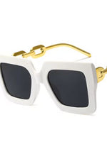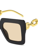 The Golden Hour Link Sunnies turn heads with their oversized square frames, light yellow-orange tinted lenses, and luxe gold-link arm detailing. With a bold black frame and a soft retro tint, these sunnies channel sun-soaked vintage glamour with a seriously stylish edge.