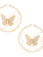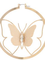 Details: Large butterfly hoop earrings, metal, 3" long, rhinestone center accent