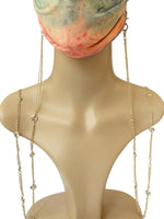 If you're looking for a simpler look, here is a stylish extra long mask holder in gold metal and clear crystal finish.