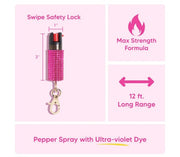 This small protection item packs a powerful, legal strength punch with ultraviolet marking dye and a 12-foot spray range. NOTE: Can not be shipped to AK, DC, HI, MA & NY. Product Details: 1/2 ounce...