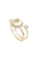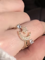 Elevate your style with the Luna Luxe 18k gold-plated adjustable ring, a celestial-inspired statement piece crafted from durable, tarnish-resistant stainless steel. Featuring a shimmering crescent moon, delicate star detail, and sparkling crystal accents, this ring...