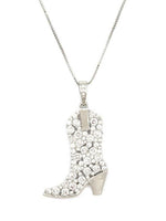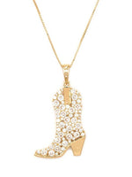 Saddle up in style with the Dallas Cowboy Boot Necklace, a rhinestone-studded stunner that blends country charm with golden glam. This eye-catching pendant features a cowboy boot silhouette encrusted with dazzling cubic zirconia, all suspended from an 18-inch gold-tone chain with an extender for the perfect fit. Whether you’re heading to brunch or the next festival, this piece adds a playful yet polished vibe to any outfit.