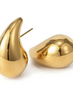 Product Details: Details:  Gold-plated metal, puffy teardrop shaped chunky earrings, post backSize: Small, 1"/Large 1.5" (*there are two sizes available)Style: FashionShips: 5 days via USPS