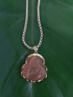 The wearing of the laughing Buddha is believed to be a symbol of happiness, abundance, contentment and wellbeing.