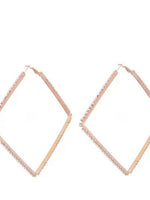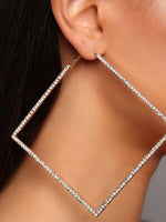 Details: Metal and rhinestone, diamond shaped hoop earrings, 4" long