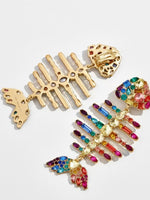 Metal Color: GoldMaterial: MetallicDetails: Fish shaped with rainbow rhinestonesColor: RainbowType: DropStyle: FashionShips: 2-3 day shipping