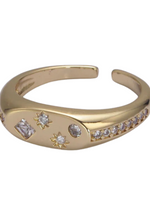Product Details: Metal Color: GoldDetails: 24k gold filled star ring, micro pave/cubic zirconia, flat signet ringSize: One sizeType: AdjustableStyle: FashionShips: 5 day USPS shipping