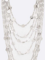 Get ready to shine with the Disco Nights Silver Coin Necklace, a stunning multi-layered statement piece designed to turn heads. Featuring cascading layers of shimmering silver chains adorned with textured coin charms, this 20-inch necklace brings vintage vibes with a modern edge. Perfect for nights out, festivals, or adding instant glam to your everyday look, Disco Nights is the ultimate accessory for making bold fashion statements.