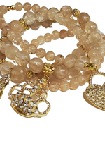 The Clairty beaded bracelet set is for the beauty who loves the subtle color with a bit of bling and this set featuring three (3) large gold rhinestone charms just works!