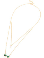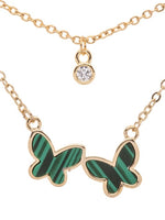 Let your style take flight with the Seraphina Necklace, a double-layered dream featuring elegant malachite butterfly charms and shimmering CZ drops. This 14K gold-plated beauty is crafted with fine jewelry settings, offering radiant sparkle and bold symbolism in one graceful piece. With its layered silhouette and luxurious detailing, Seraphina is perfect for everything from brunch dates to moonlit evenings.