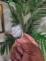 Product Details: Metal Color: GoldDetails: Alloy, adjustable,  freshwater pearl ring Size: One size Type: Adjustable Style: Fashion/statement Ships: 3-5 day USPS shipping    *Photos may alter the color, bang color is gold (see second photo)