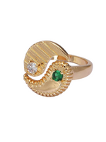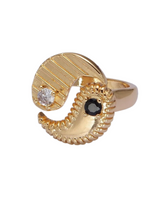 Details: Adjustable, gold plated abstract ring, Rhodium plated