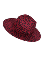 Composition: Wool felt, adjustable inner-strap, burgundy/wine cheetah print hat