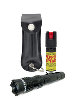 Black ALPHA FORCE Flash Light Stun Gun and Pepper Spray Combo Pack for Self Defense - Extremely Powerful Stun Gun with Bright Led Flashlight 1/2 Ounce Police Grade Max Strength 10% Pepper Stream with Pouch.