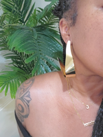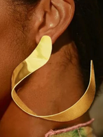 Product Details: Metal Color: GoldDetails: 4" long, alloy metal earrings, large hoopsStyle: FashionShips: 5-7 days