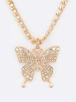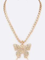 RHINESTONE BUTTERFLY PENDANT NECKLACE EARRING SET RHINESTONE BUTTERFLY PENDANT NECKLACE EARRING SET