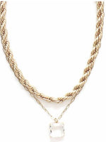 Product Details: Metal Color: GoldDetails: Two-layer necklace set; rope chain and simple link chain with crystal pendant, metal plated, 16" longStyle: FashionShips: 5-7 days