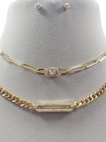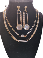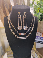 The Alaina two-piece necklace set combined an intricately designed genuine opal gemstone wrapped in 18k e-plated gold with a rhinestone heart charm and and a clear laughing Buddha pendant on a dainty rope chain.