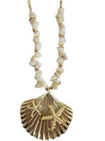 Materials: Gold-tone alloy pendant + natural shell chips + gold-plated bead accents